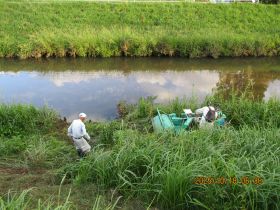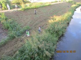 8月の事業活動は 早朝からかなり蒸し暑い中、稗田川右岸 前橋から法響橋までの草刈りを実施しました。皆汗だくとなりながら無事作業を終了しました。