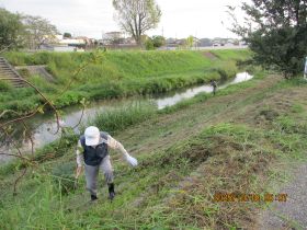 今年最後の活動となりました。11月に入り流石に早朝は冷気が肌を刺すようになってきました。本日は稗田川右岸 法饗橋から中学橋まで、高校前の川岸の草刈りを実施しました。