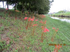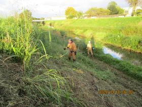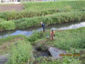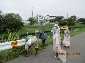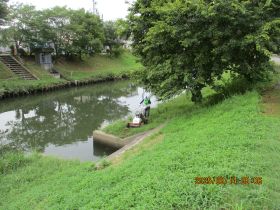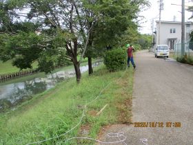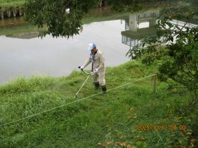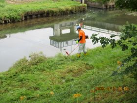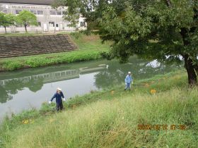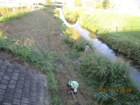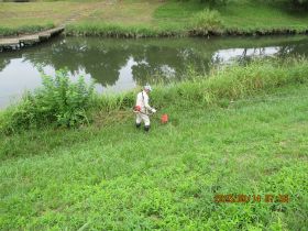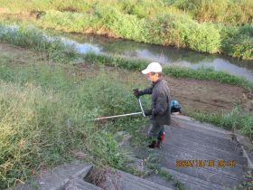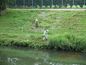 清流会9月の活動は稗田小橋から法饗橋左岸の草刈りを実施しました。予定とは異なりますが右岸で彼岸花若干花咲に合わせて草刈り場所を変更して実施しました。又清流会コンテナ裏側の草刈りも合わせて実施しました。9月に入っても残暑厳しかったのですが、予定通り完了しました。