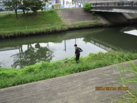 6月の事業活動は 作業30分前まで激しい雨で、作業実施が危ぶまれましたが作業開始時には日も差してきて作業には問題ない日となりました。 稗田川法饗橋から中学橋右岸の草刈り、草取り&清掃などを実施しましたが、前夜までの雨で稗田川が増水しており、高校グラウンド側の草刈りを中心に実施しました。