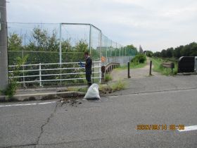稗田川左岸 稗田橋から吉野橋法面、川岸草刈りと論地橋から法饗橋までの稗田川沿いゴミ拾いを実施しました。熱中症に気を付けながらの実施でした。