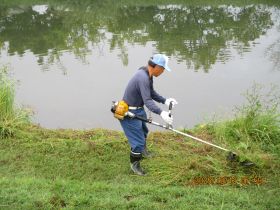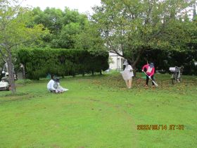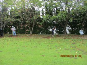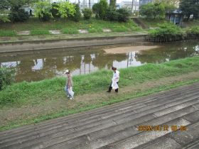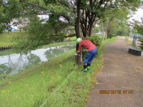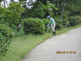 9月の活動は前日までの不安定な雨模様の空から一転日差しのこぼれる日和でした。しかしながらやや蒸し暑い中、フレンド公園内の芝生残土処理と目土砂整備を実施し そして稗田川右岸の中学橋から稗田橋までの樹木下草と法面草刈り及び稗田川左岸の中学橋から吉野橋 川岸草刈り及び稗田川沿いゴミ拾いを実施しました。
