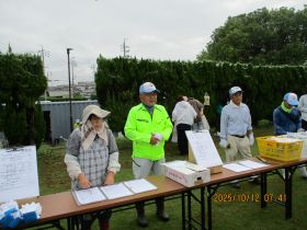 そのあと、水明会総会を青空の下で実施し令和6年度活動結果と収支報告、令和7年度の活動計画・予算計画を報告し承認されました。