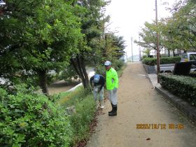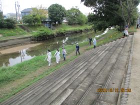 10月の活動は雨が心配されましたが、活動には問題ない天気で、フレンド公園内の清掃(芝生残材と落ち葉など)と、稗田川左岸の中学橋から吉野橋までの樹木下草と川岸草刈り及び稗田川左岸の法饗橋から稗田橋までの彼岸花ロープと杭の撤去及び稗田川沿いゴミ拾いを実施しました。