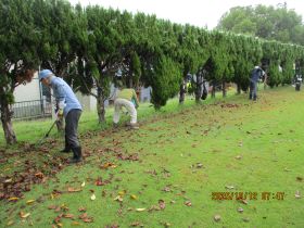 活動日の早朝は、この時期としては天候に恵まれた活動日となる。作業は公園の芝刈草を集積、